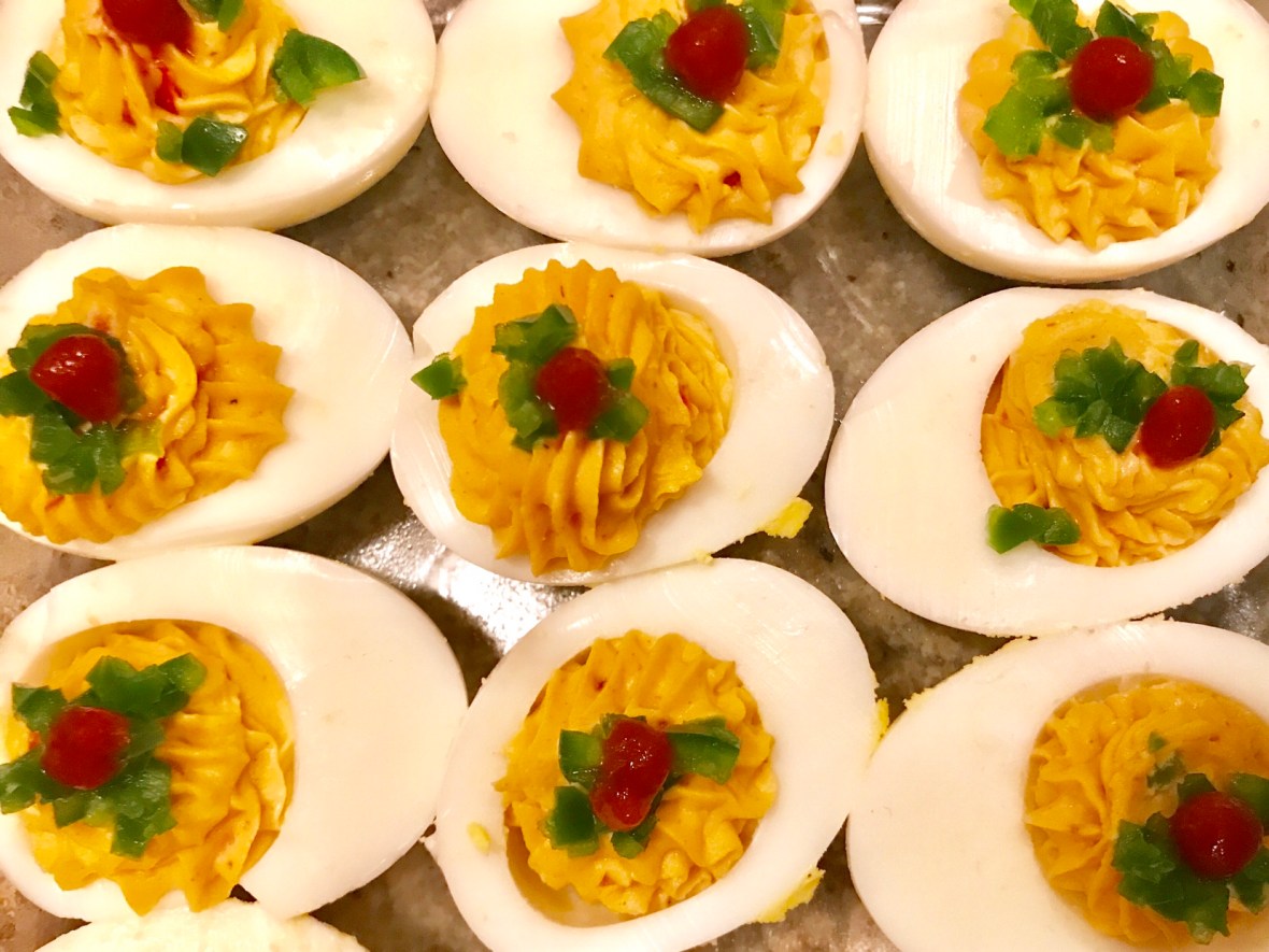 Holiday Deviled Eggs with Roasted Red Pepper and Jalapeño (Paleo)