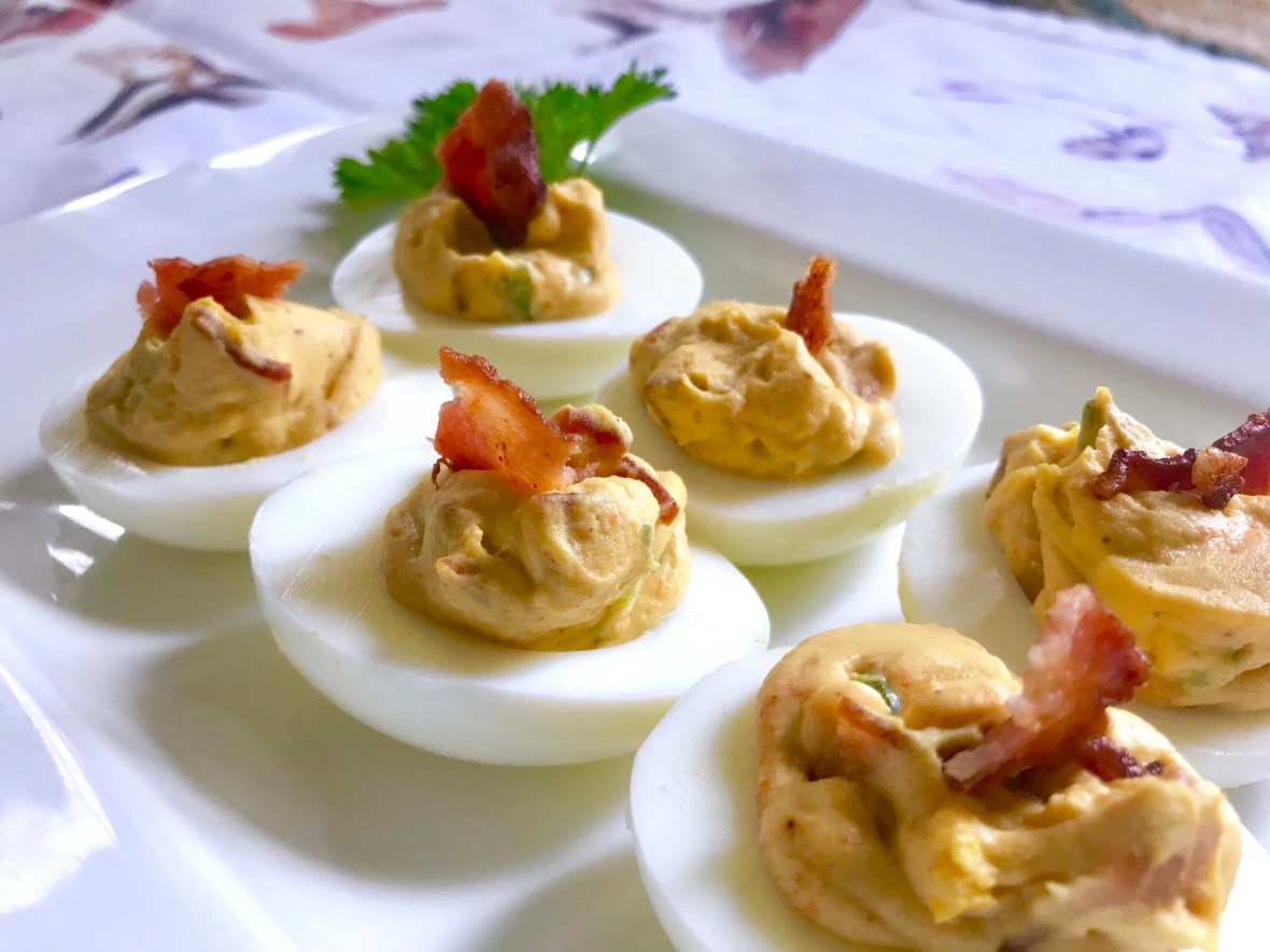 I bring you… jalapeńo popper deviled eggs. I promise you, they’re worth a try.