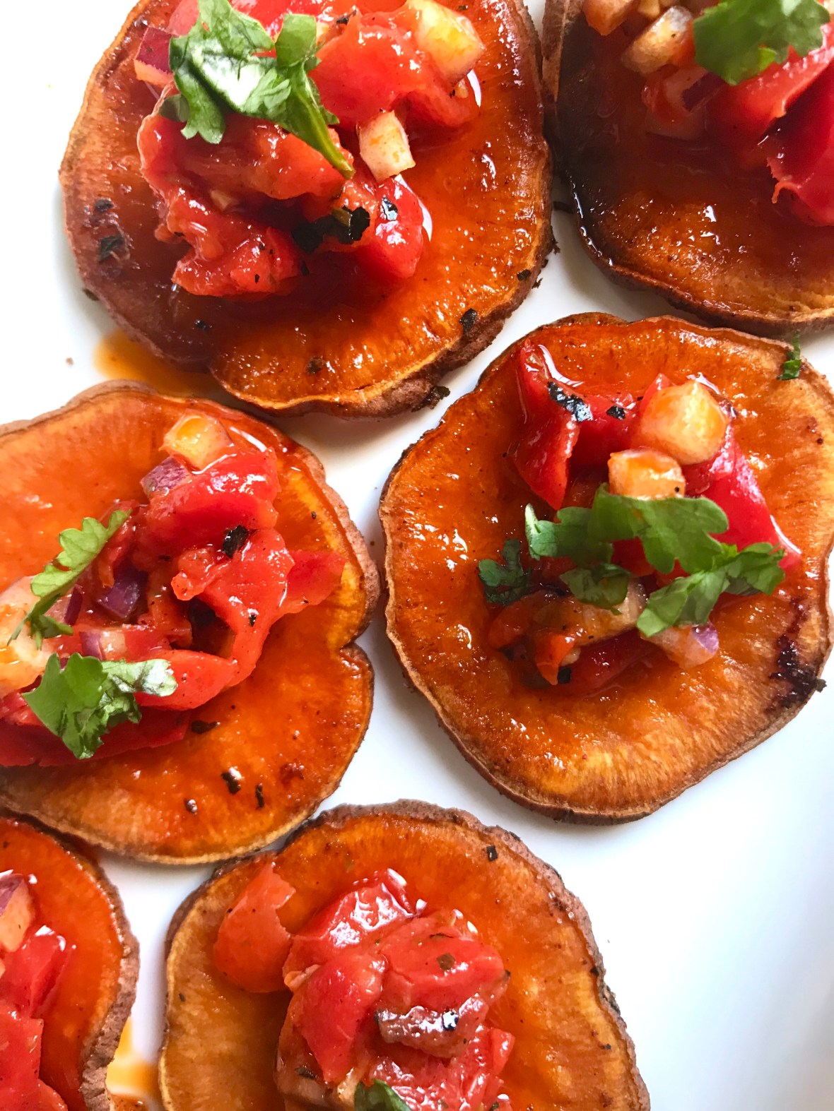 Sweet Potato “Crostini” with Red Pepper Bruschetta (Paleo!)
