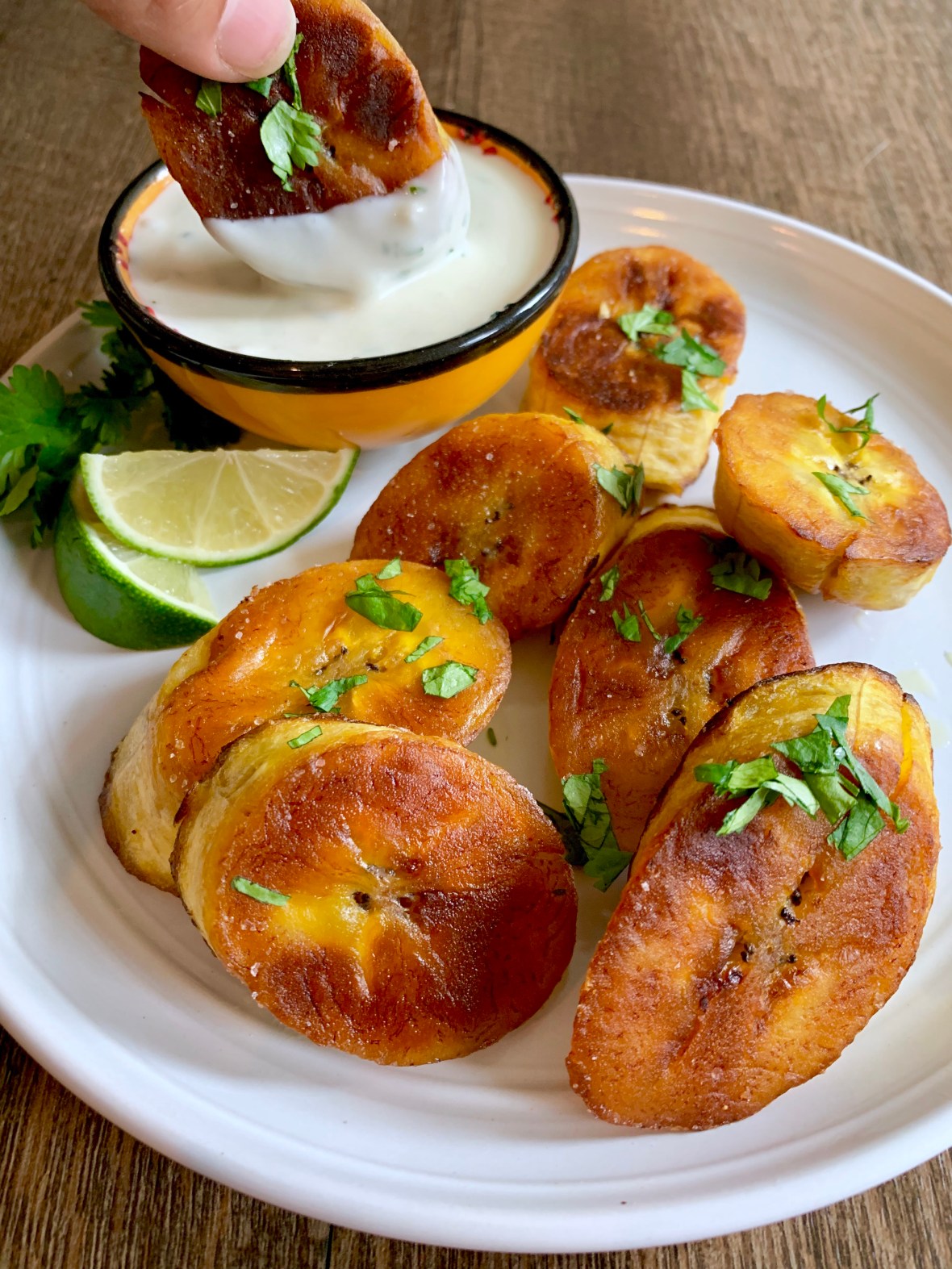 Crispy Roasted Plantains with Cilantro Lime Aioli (Paleo, Vegan!)