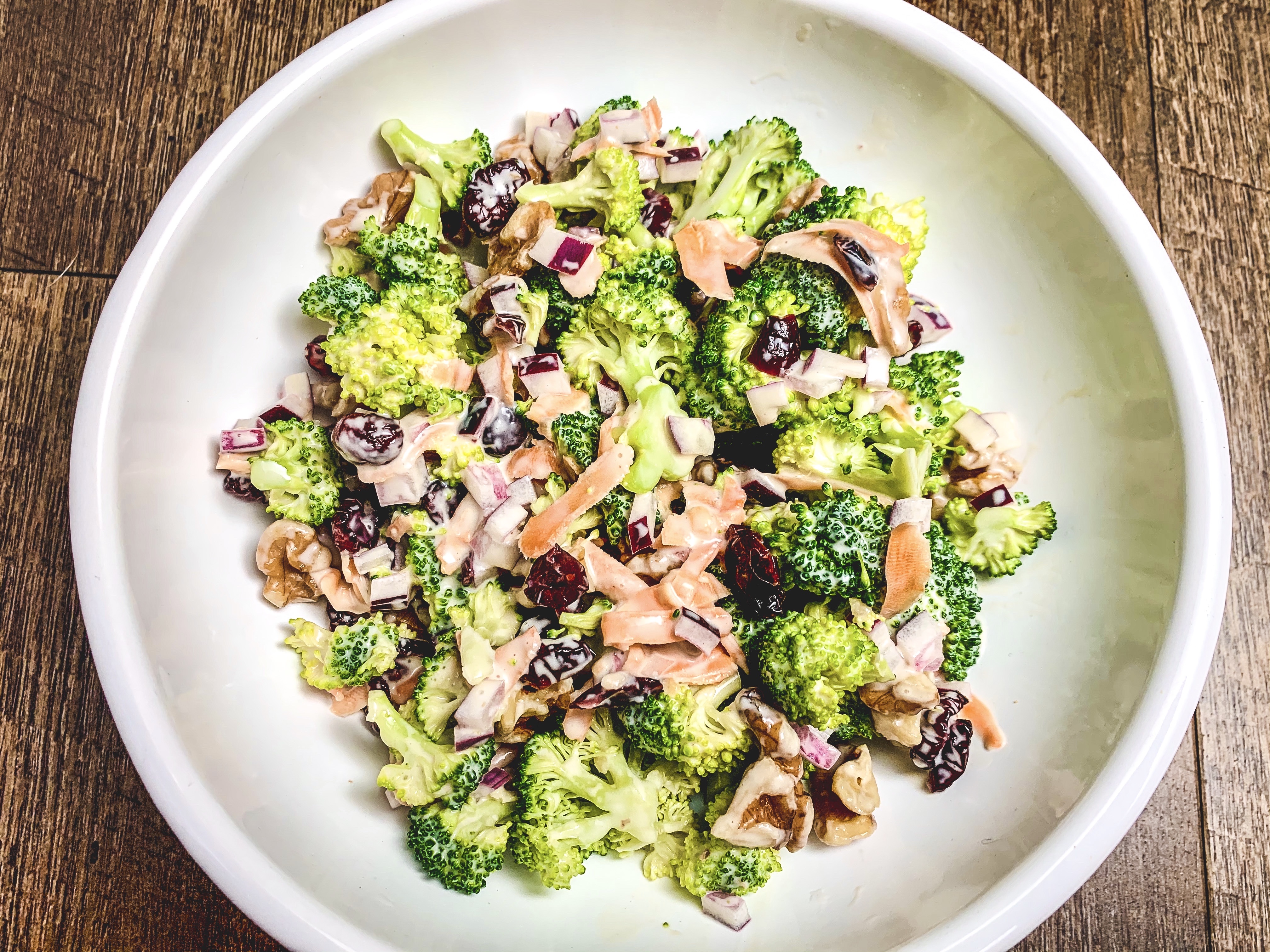 Speaking of moving backward, since today is Thursday – it’s a throwback Thursday! Taking this recipe back from the past. I used to work as a sub shop as a teenager, down in the boonies of Landenberg. I made homemade chicken salad, deviled eggs, sandwiches.. and broccoli salad! I loved making this, but I haven’t had it in years. I made a few minor tweaks to keep it current, and above all else… vegan! Enjoy the last bits of warm weather with this side salad for your social-distancing BBQ.