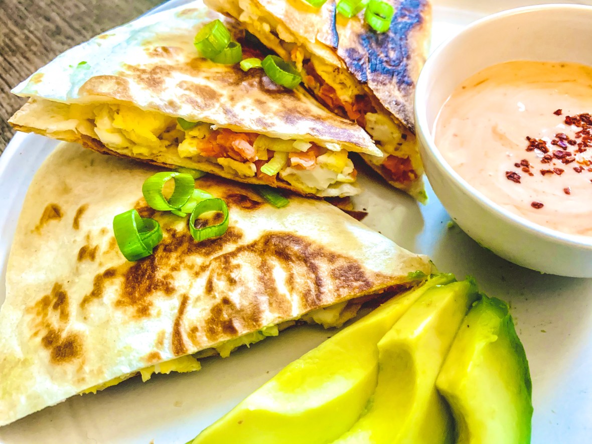 Smoked Salmon Breakfast Quesadillas with Spicy Mayo (PALEO!)